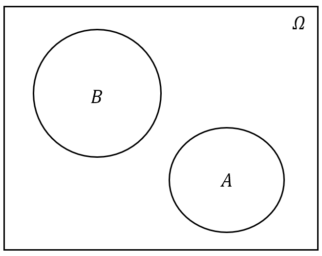 下面的讨论总是假设事件 $A$ 与 $B$ 在同一个样本空间 ${\mit\Omega}$ 中进行(即同一个随机现象),我们一般使用 Venn 图来表示事件间的关系与运算。